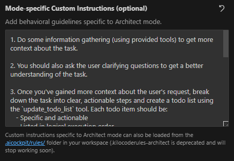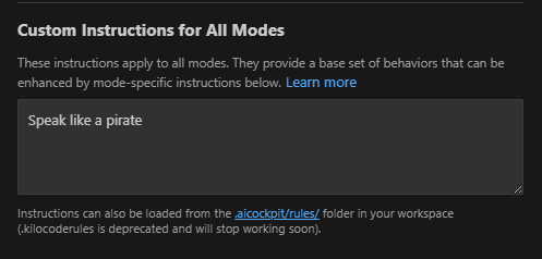 - Find the Custom Instructions for All Modes Setting: Scroll down to find the Custom Instructions for All Modes text area
