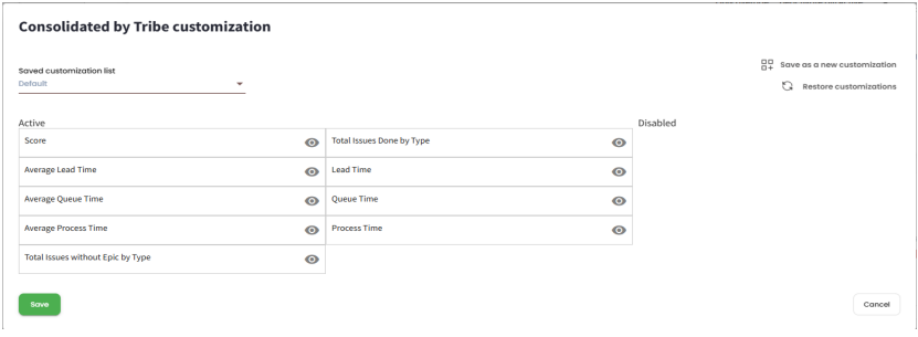 The score for each team is defined by the sprints/periods loaded in the VSM. When clicking on a tribe’s score, the sprints/periods being considered are listed.