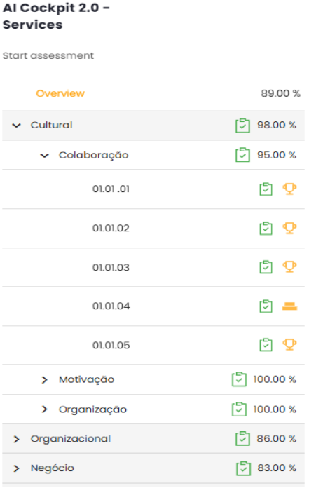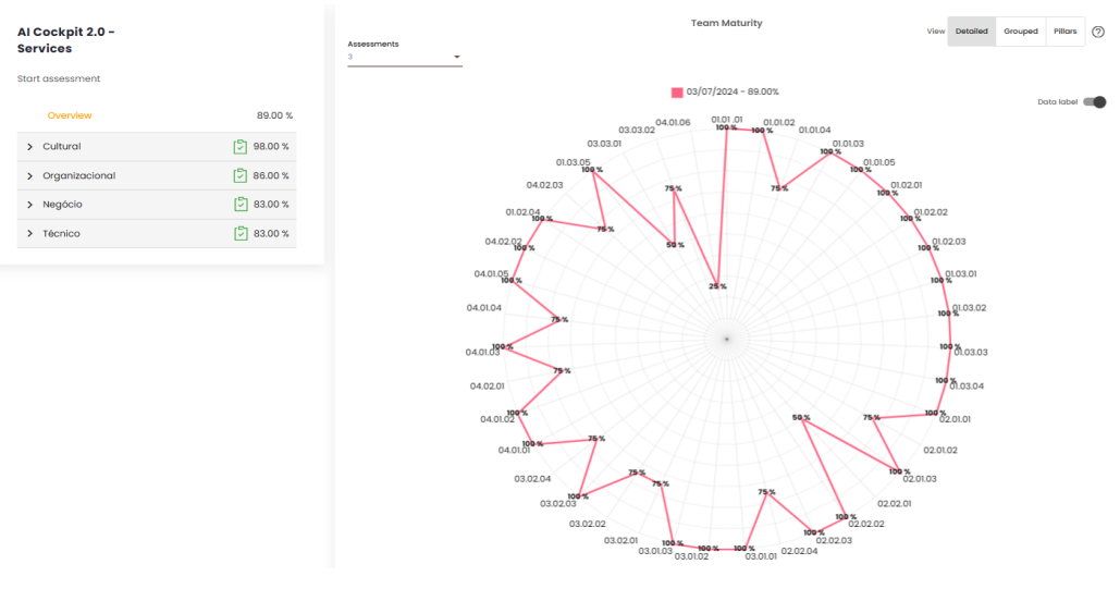 Shows general indicators by category, based on the registered pillars. It allows you to visualize the squad’s performance with each assessment applied.