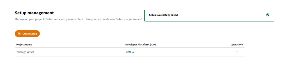 Navigate to Setup: Go to the "Setup" page to see a list of existing configurations or create a new one.