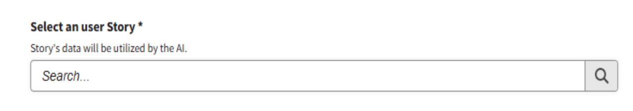 ImportantThe "Select a User Story" field is only enabled after a project is chosen. If your organization does not have a provider linked, this field will not be displayed.
