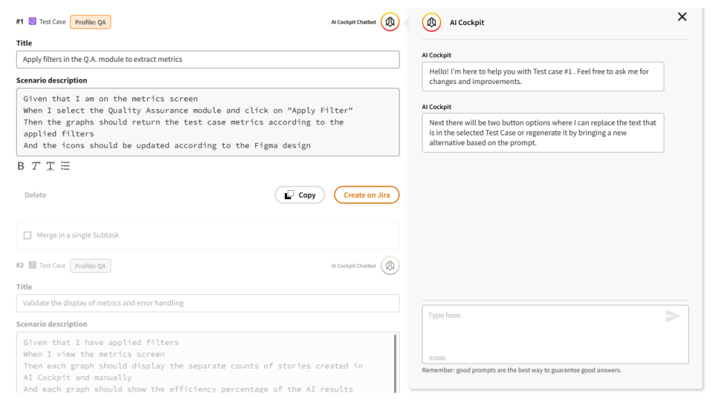 The Quality Assurance module helps you create detailed test cases from user stories, streamlining your testing process for greater efficiency.
