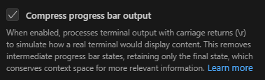 Quando ativado, processa a saída do terminal com retornos de carro (\r) para simular como um terminal real exibiria o conteúdo. Isso remove os estados intermediários da barra de progresso, retendo apenas o estado final, o que economiza espaço de contexto para informações mais relevantes.