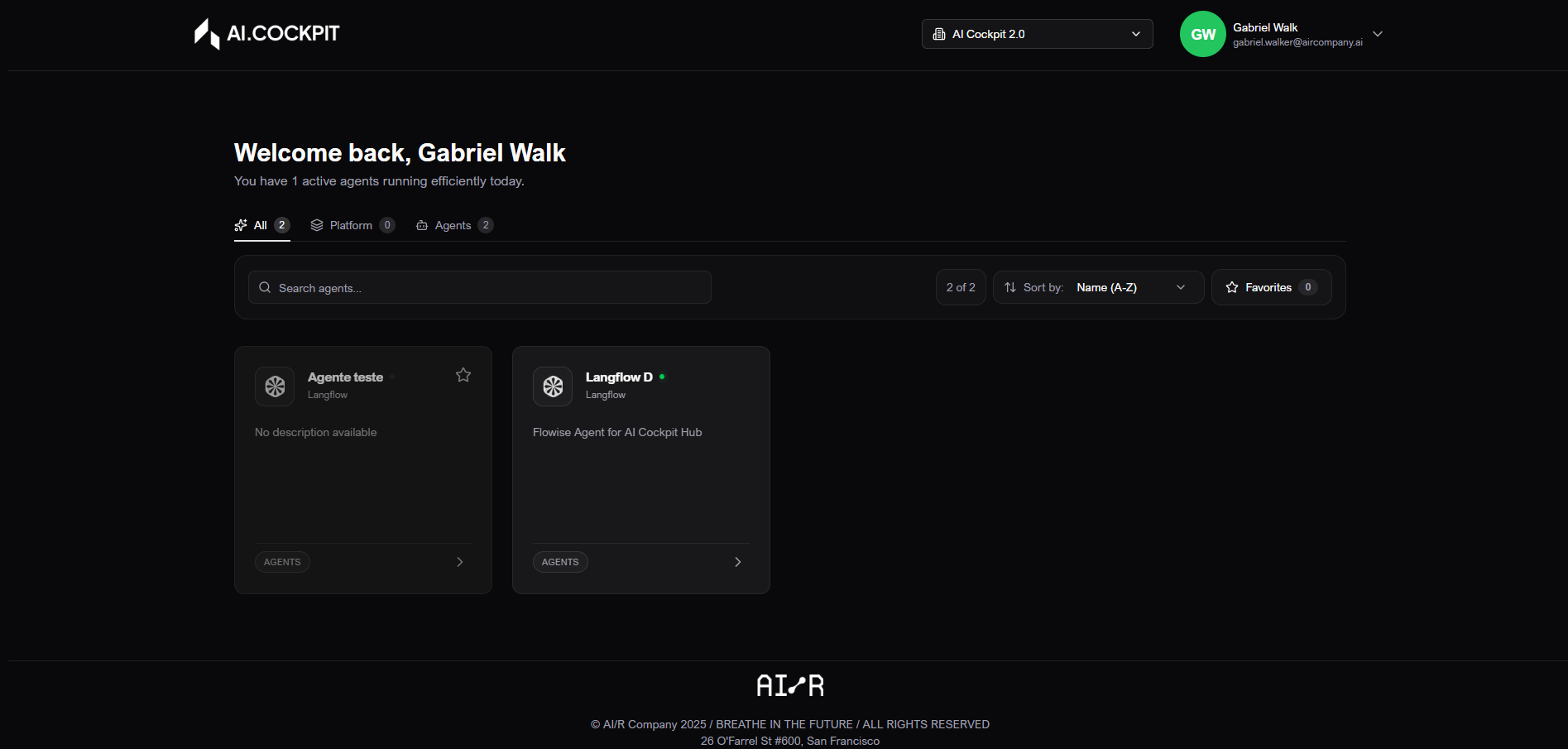 O Cockpit é a porta de entrada da plataforma para descobrir agentes e plataformas.