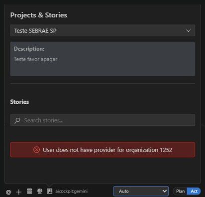 This error occurs when the user does not have a provider token (e.g., Jira, Azure DevOps) registered in AI Cockpit.